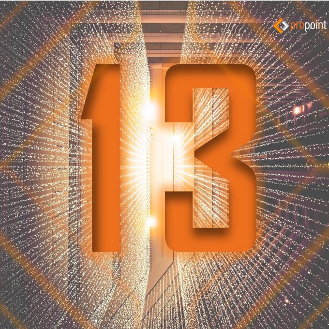 To już 13 lat! Życzymy sobie wszystkiego najlepszego, a w szczególności nieustannych wyzwań, nowych możliwości i ciekawych projektów! Dziękujemy wszystkim pracownikom za zaangażowanie w rozwój firmy! Dzięki Wam PROPOINT to firma, w której profesjonalizm, jakość i zespół mają największe znaczenie. Wspólnie stworzyliśmy potężną polską markę, która realizuje projekty dla największych firm na całym świecie. Ten rok był dla nas inny, niełatwy, ale i wyjątkowy - staliśmy się bardziej uważni oraz skupiliśmy się na optymalizacji i elastycznym podejściu do nowej rzeczywistości. Mimo ogólnoświatowej pandemii i spowolnienia gospodarki, możemy pochwalić się sukcesami, realizacją wszystkich zaplanowanych projektów oraz co ważne - nowymi inwestycjami! Teraz jesteśmy jeszcze silniejsi! Nie zwalniajmy tempa!
